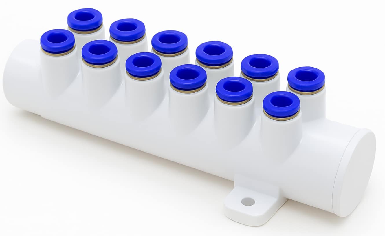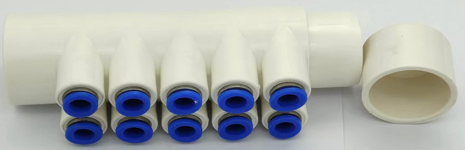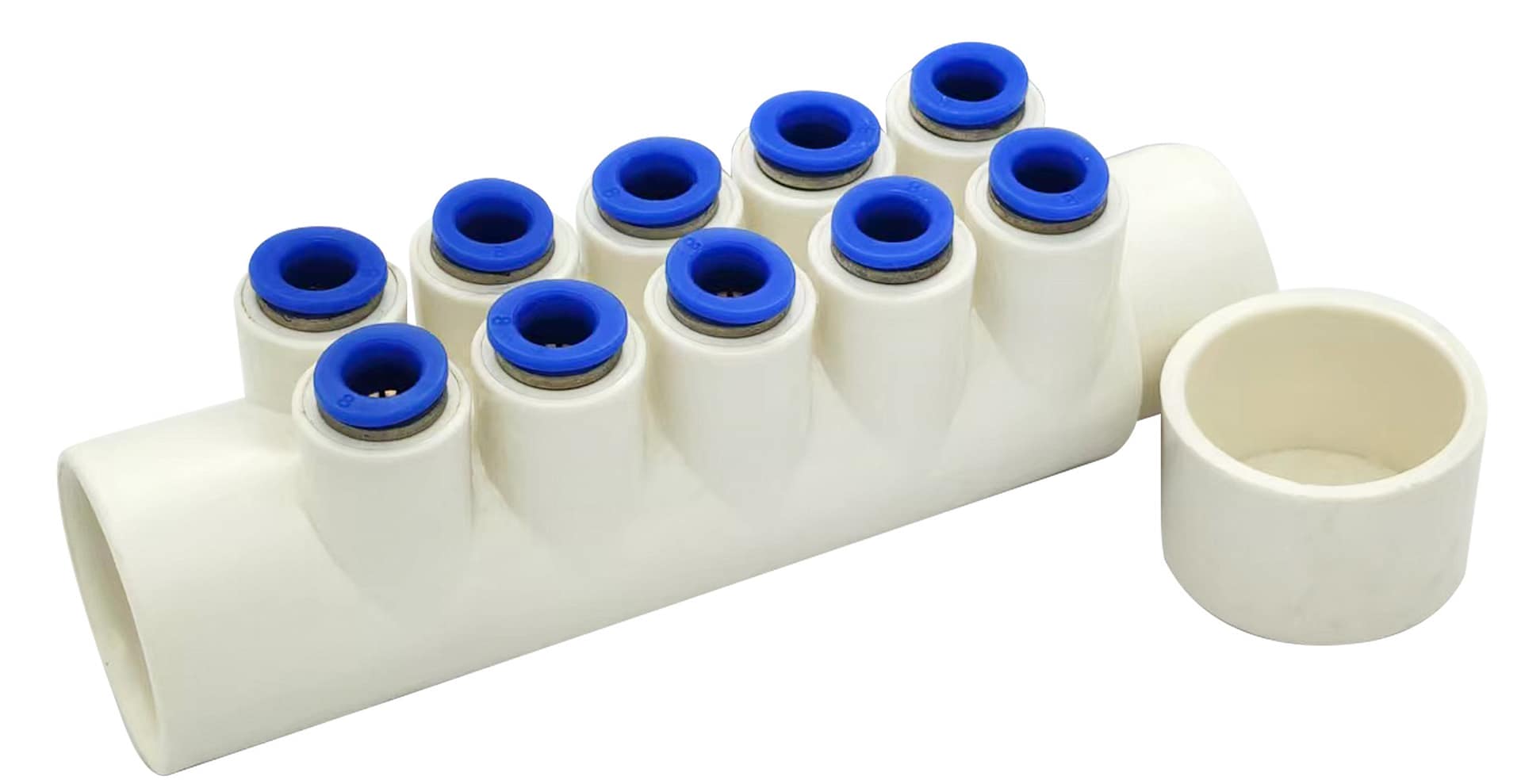 Luchtverdeler PU-slang 10-voudig is een belangrijke component voor de luchtverdeling in whirlpools, jacuzzi’s en andere luchtcircuits.