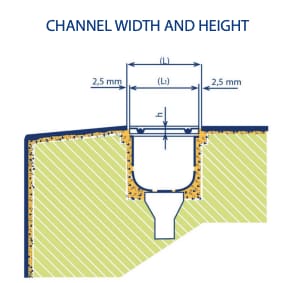 Bestaande uit een eindstuk van polypropyleen en een steunplaat van V2A voor gootroosters die evenwijdig aan het zwembad lopen.