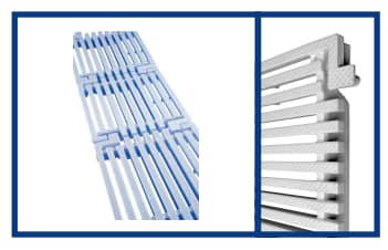 Het materiaal waarvan de gootroosters zijn gemaakt is PP, gestabiliseerd tegen UV-straling. In principe zijn de roosters en spijlen uitgevoerd in het wit. Rechte of gebogen (buitenradius één of twee meter) profielen worden gevormd uit plaatmodules en losse stangen en met een kliksluiting in elkaar gezet. De elasticiteit van de modules maakt het mogelijk om eventuele lineaire uitzetting als gevolg van eventuele temperatuurverschillen binnen de gehele lengte van het kanaal te compenseren. Bij alle gootroosters geldt dat de goot 5 mm breder moet zijn dan de gebruikte spijlen. Dit is nodig om het plaatsen en verwijderen van de staven gemakkelijk te maken en om eventuele uitzetting te compenseren.