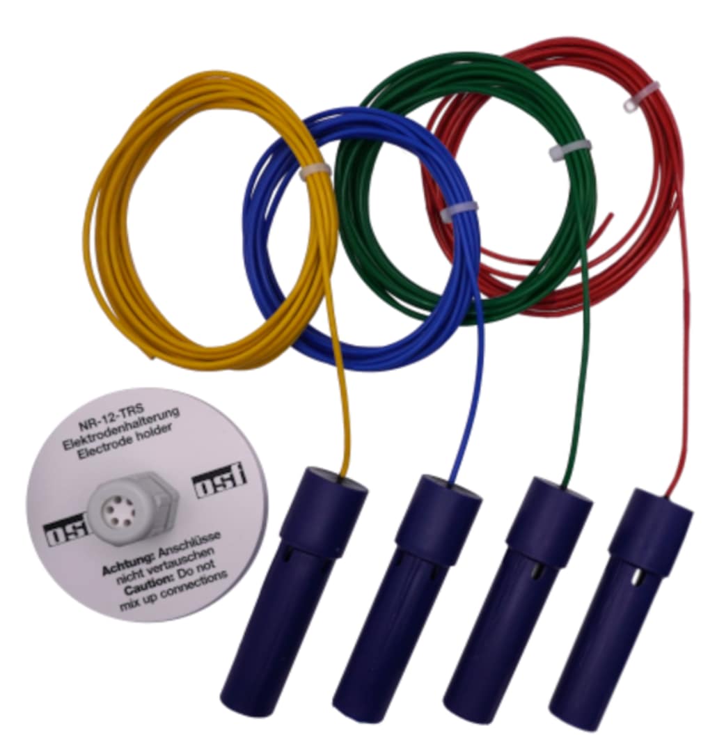 OSF-elektrodenset 4-voudig – 4 hangende elektroden met beschermende kunststofhoes en ronde elektrodehouder.