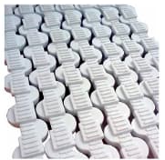 Overlooproosters wit zijn gemaakt van UV-gestabiliseerd polypropyleen. Uitvoering volgens EN-13451-1 (sleufbreedte 8 mm).