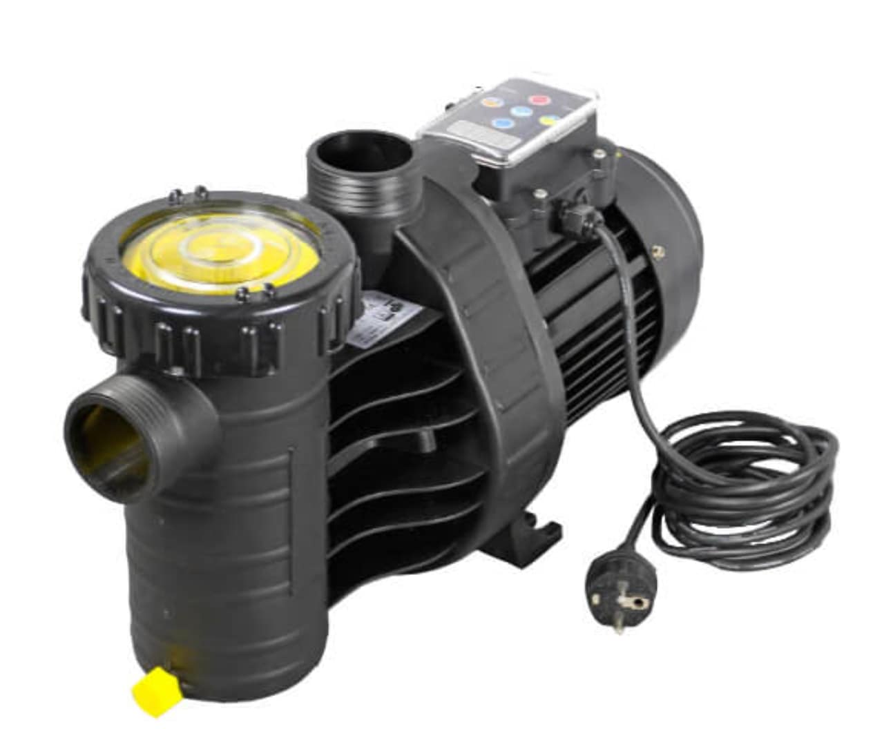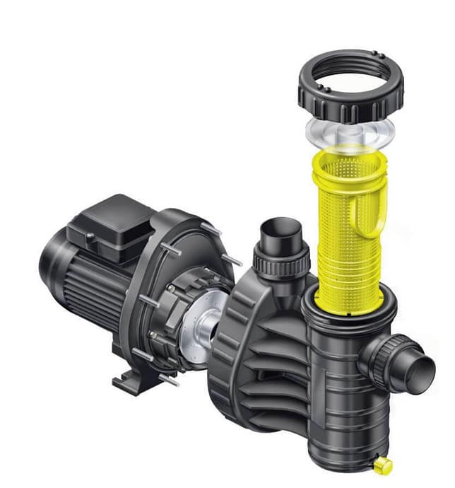 Circulatiepomp met geïntegreerde vuilvanger, zelfaanzuigend tot 2,00 m, aansluiting 50 mm PVC-buis. De motor-/pompas komt niet in contact met het zwembadwater. Elektrische scheiding!